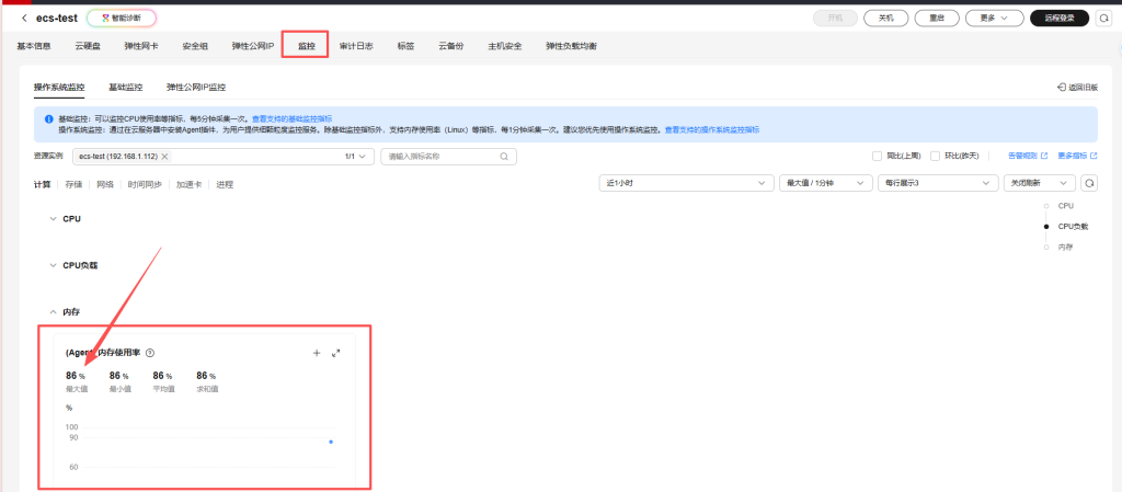 我们可以看到达到了86%,则远程连接很有可能是应为内存使用过高导致的。