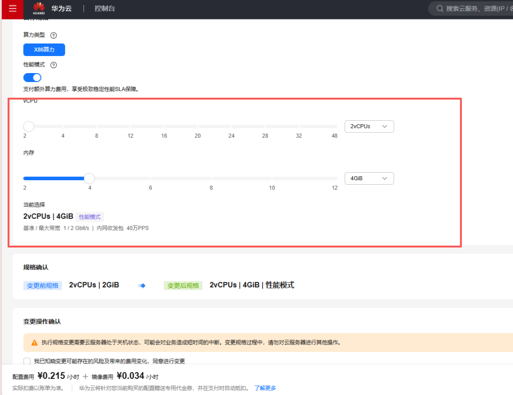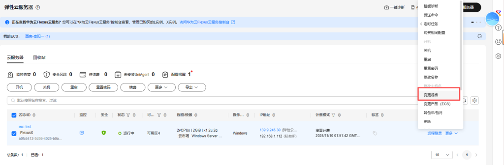 控制台->更多->变更规格->查看可变更规格并选择合适规格变更