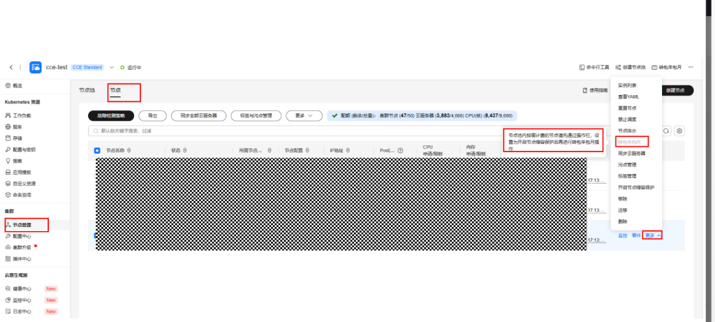 系统提示当前资源处于CCE使用中,无法进行转包周期操作。